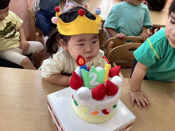 9月 | 敬老の日、給食参観、個人懇談 | 3月 | ひなまつり、お別れ遠足(2歳児)、お別れ会 |